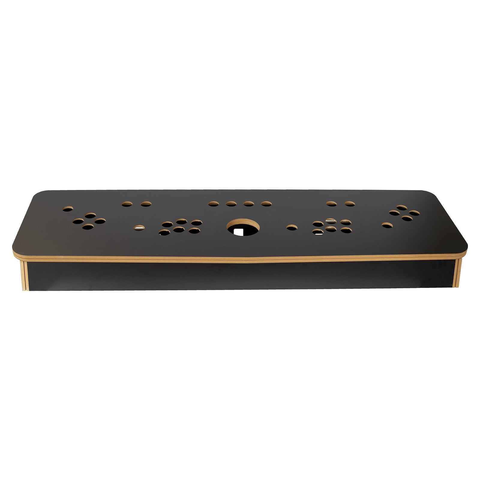 This flat pack 4 player control panel kit is manufactured from 18mm black MDF and professionally cut on a CNC machine for perfect precision every time. This flat pack control panel arcade kit features a 4 player layout with pre-drilled holes for 2 x 1 joystick and 6 buttons per player & 2 x 1 joystick and 4 buttons per player. There are also 8 extra button holes, which can be used for admin buttons etc and 2 slot handles for easy carrying.