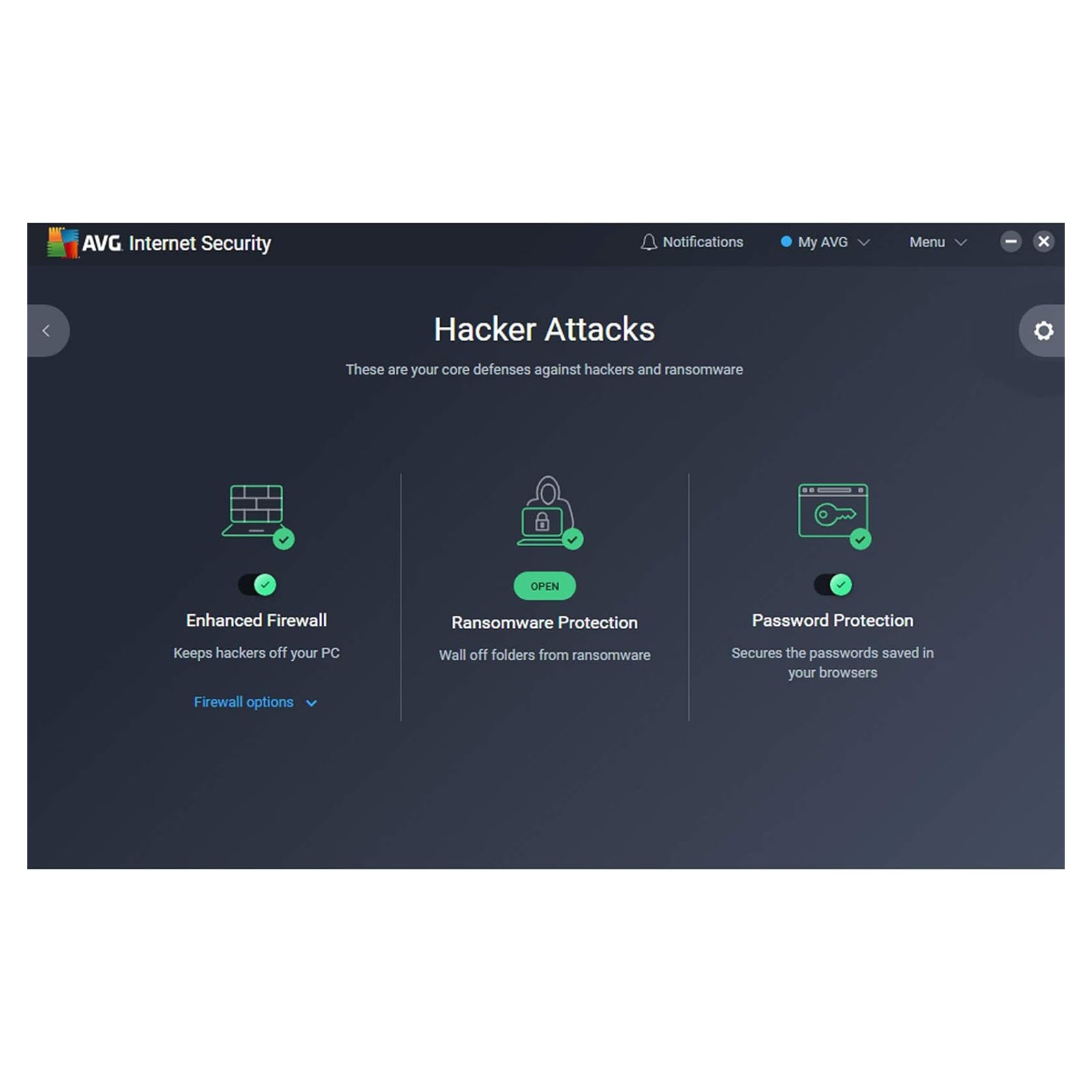 AVG Internet Security blocks viruses and malware, keeps your emails secure, protects your personal files, passwords, and webcam from hackers, and lets you shop and bank online without worry.
