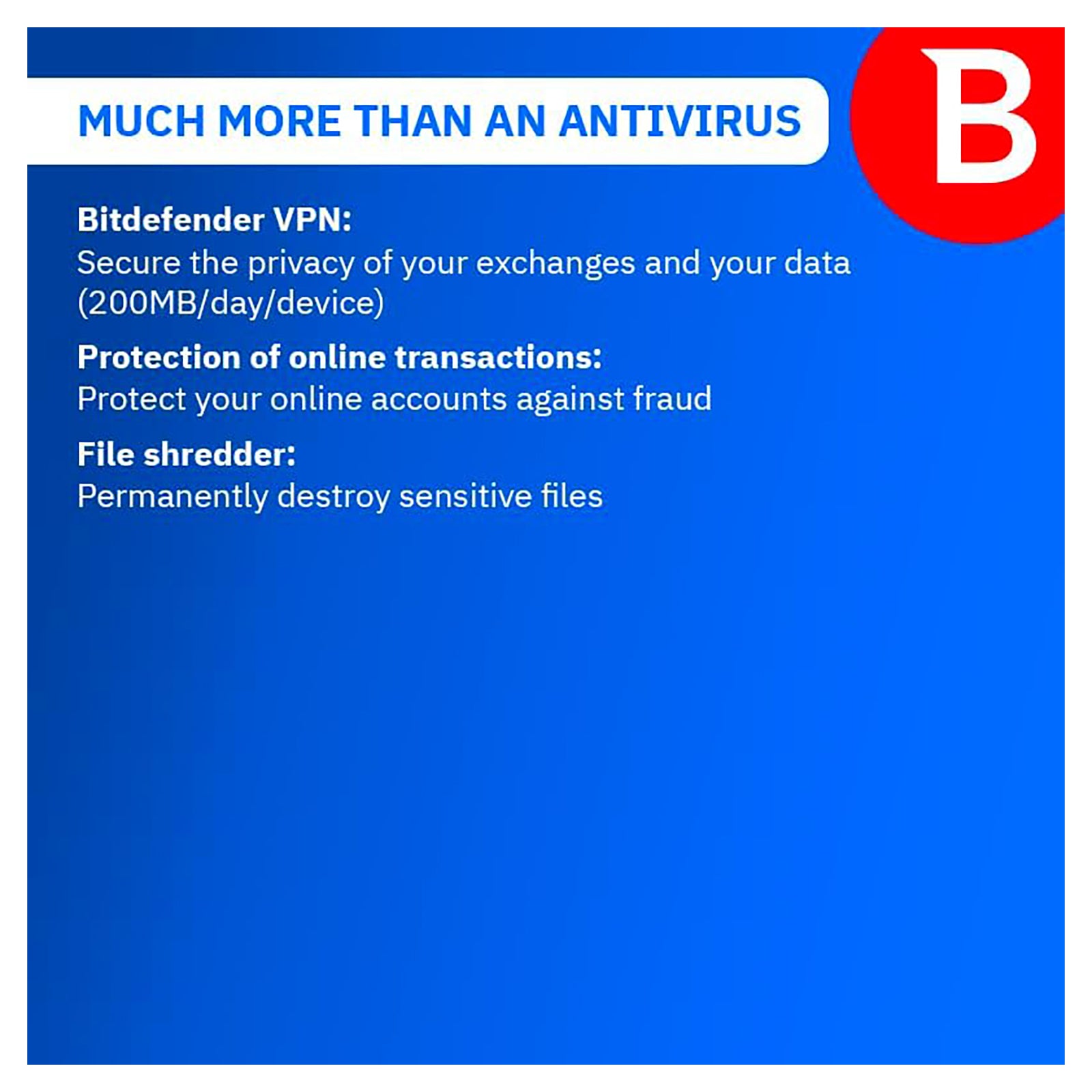 Bitdefender's unbeatable multi-layered protection keeps your devices safe from all new and existing threats. Features include: