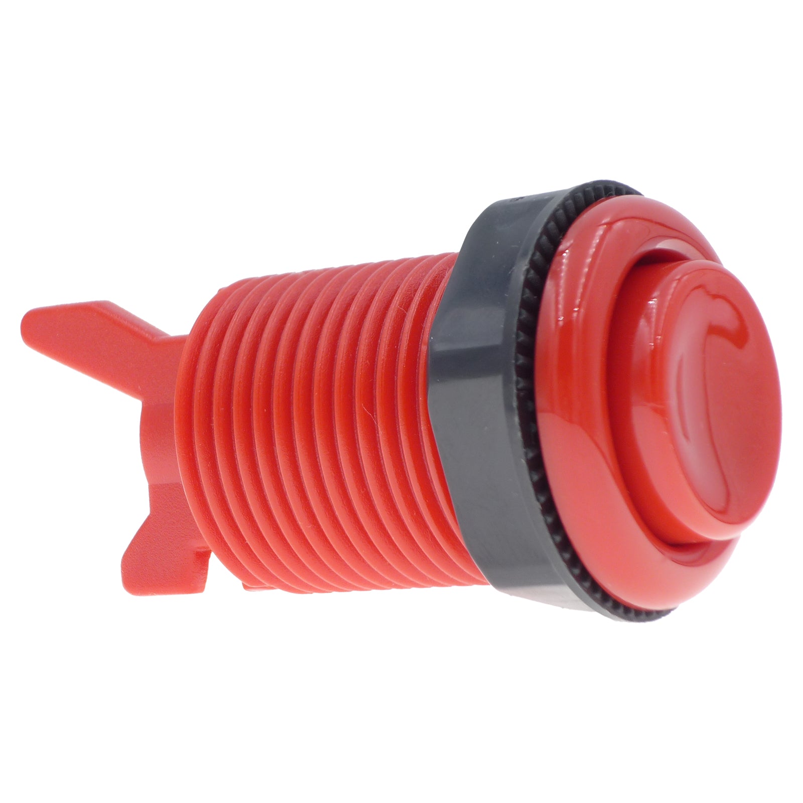 This is a classic arcade button. The classic 28mm arcade button is perfect for use in arcade machine projects as well as various commercial and academic projects, including museum, exhibition, photo booth and interactive displays. This classic arcade button features a concave plunger, similar in style to the Suzo Happ Classic arcade button and includes a fixing nut. This button fits a 28mm (1 1/8") mounting hole and fits wood or metal control panels. Thanks to it's long thread length it is suitable for mounting on 3/4" wood control panels with a plexi glass or lexan cover.