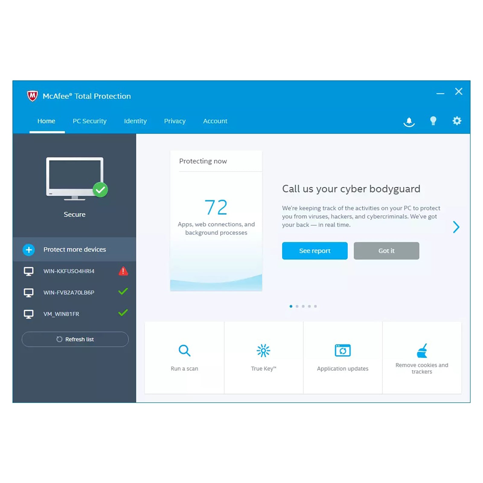 At its core, McAfee Total Protection provides our award-winning antivirus to defend against viruses, online threats and ransomware with both cloud-based online and offline protection. Beyond your Windows PCs, McAfee Total Protection provides cross-device protection that extends your peace of mind to your Macs and iOS/Android mobile devices, so you can enjoy security at home and on-the-go across all your compatible devices.