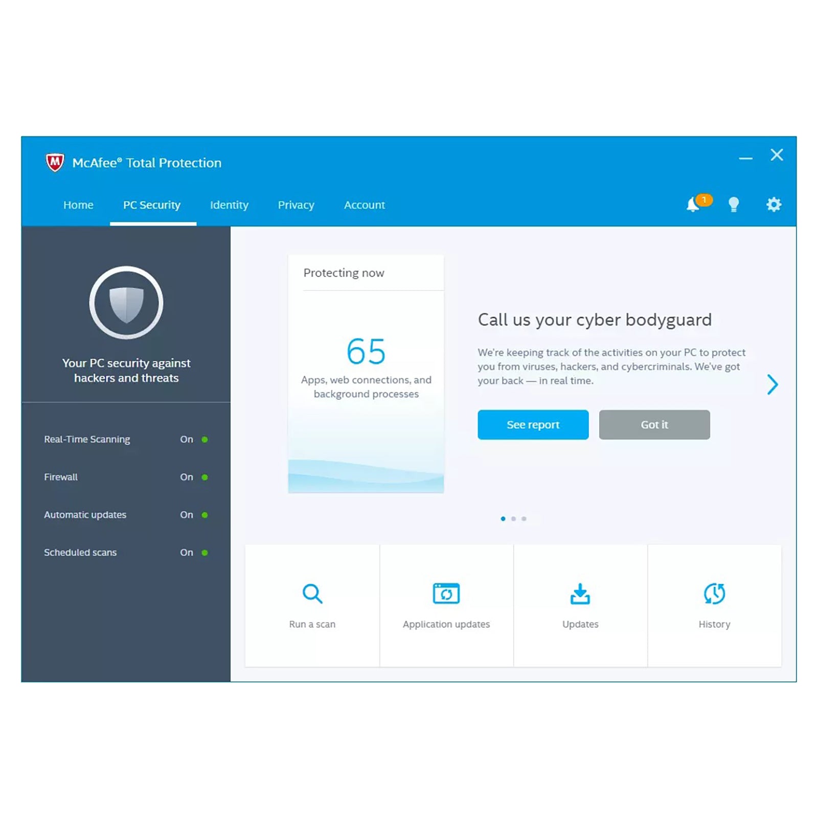 McAfee Total Protection combines award-winning cloud-based antivirus and intelligent web protection together in one package to protect all your computers and mobile devices—now backed by our 100% Promise that a McAfee expert will remove the virus.